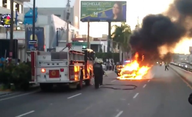 VIDEO Carro publico se prende en fuego en la 27 esquina Privada